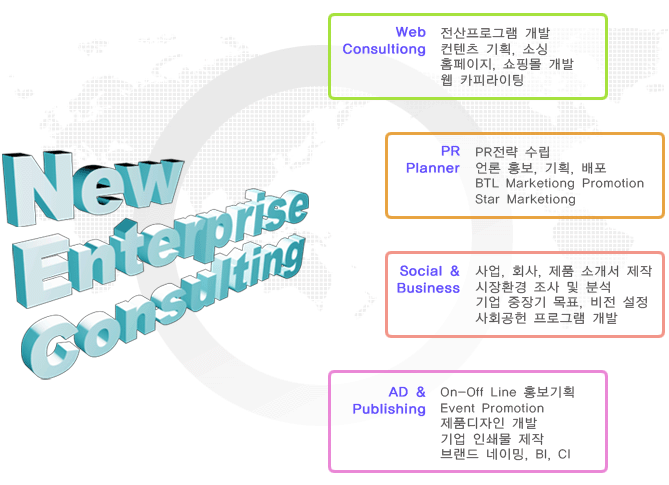 이후 온라인상의 홈페이지 구축 및 프로그램 설정, 기업홍보물제작, 사업 설명회 및 제품 및 아이템 홍보, 전시 컨벤션등 기업과 브랜드의 성공을 위한 시작과 끝을 작성 대행해 드립니다.